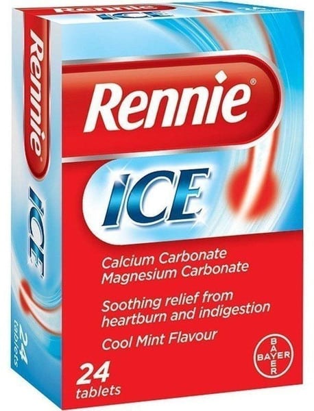 To Rennie Ice είναι αντιόξινο μασώμενο δισκίο, χωρίς ζάχαρη, ανθρακικό ασβέστιο και ανθρακικό μαγνήσιο, που αντιμετωπίζει τα συμπτώματα καούρας, παλινδρόμησης οξέων, και των στομαχικών/γαστρικών ενοχλήσεων που σχετίζονται με οξέα. Έχει γεύση δροσιστικής μέντας και είναι κατάλληλο για χρήση απο ενήλικες και παιδιά άνω των 12 ετών.