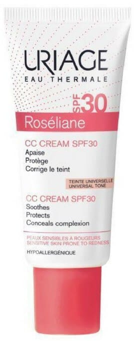 Ενυδατική κρέμα προσώπου με χρώμα Uriage Roseliane CC Cream SPF30 για την εξισορρόπιση της ερυθρότητας.